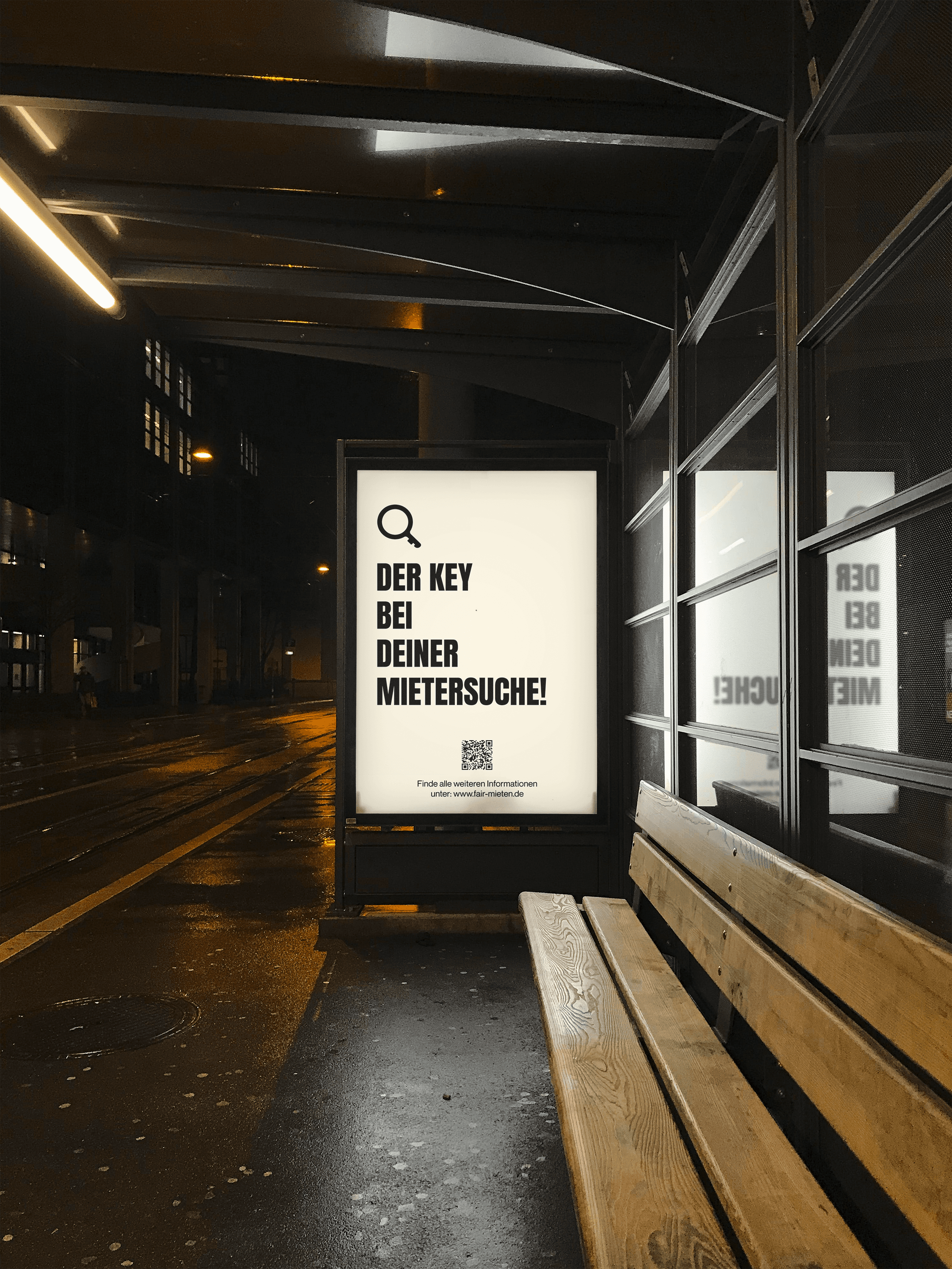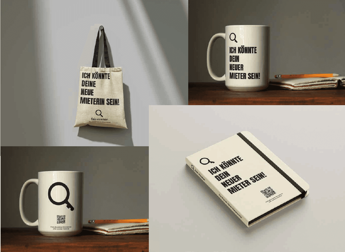 Ein zentrales Element der Kampagne ist das entwickelte Logo, das eine Kombination aus Lupe und Schlüssel darstellt. Die Lupe steht dabei für die Perspektive der Wohnungssuchenden, die aktiv nach einer passenden Unterkunft suchen. Der Schlüssel symbolisiert die Vermieter, die den Zugang zu Wohnraum ermöglichen. Durch die Verschmelzung beider Symbole entsteht ein visuelles Zeichen, das beide Seiten des Wohnungsmarktes verbindet und den Dialog zwischen ihnen in den Mittelpunkt stellt.